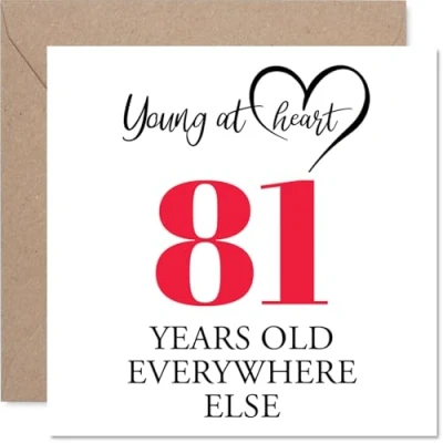 81st Birthday Cards for Men Women Young at Heart Happy Card 81 Year Old Man Woman Grandma Husband Nanny Auntie, 145mm Bday Greeting