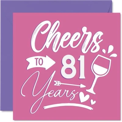 81st Birthday Cards for Women Cheers Happy Card 81 Year Old Woman Nan Wife Granny Nanny, 145mm Bday Greeting
