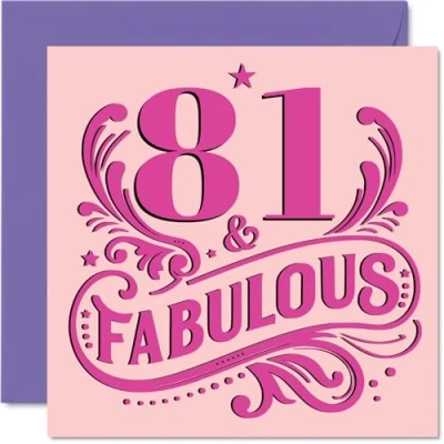 MAKE HER SMILE WITH THIS CUTE BIRTHDAY CARD: This exceptional quality birthday card for her shows the design 'Fabulous'. If you are looking for special birthday greetings cards for Women birthday card then then this happy birthday card is bound to make her smile. Not just for birthday gifts for Women this could also be for Nanny, Nana, Nan, Wife, Grandma, Auntie, Granny or Gran. WHAT DO YOU GET: The card is printed on one side and BLANK ON THE INSIDE to allow you to write your very own message. The unique fun design is printed on a specially sourced and environmentally responsible board. At 360 microns thick the natural white one-sided gloss board has a quality look and feel. Supplied with a coloured gummed envelope to complement the design and ready to be sealed and sent in the post. Great Nanny birthday cards, 81st birthday card, Nana birthday card. NO INK SMUDGES: There is nothing worse than writing inside a card to find that the shiny surface makes the ink smudge. This is why we use a high quality one sided coated board. The uncoated side will absorb more of the ink from your pen to make smudging a thing of the past. 81st Birthday card for Nan, 81st Birthday card for Wife, 81st Birthday card for Grandma. SIZES: Greeting Card = 145mm x 145mm, Envelope = 155mm x 155mm, Card Thickness = 360 micron. Auntie 81st birthday card, birthday cards for Granny, cute birthday cards for Gran, 81st birthday card Nanny, Nana 81st birthday card. MADE AND QUALITY CHECKED IN THE UK: We print and manufacture all our products right here in the UK so you can be sure of a fast turnaround and a product that is expertly made. Using environmentally responsible premium board our card is conscious of the responsible management of the world's forests - perfect birthday cards for Women, fun birthday cards for her, Nana 81st birthday cards, female birthday cards.