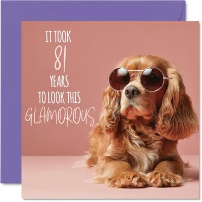 81st Birthday Cards for Women Glamorous Puppy Happy Card 81 Year Old Woman Nanny Granny Auntie Nana, 145mm Bday Greeting