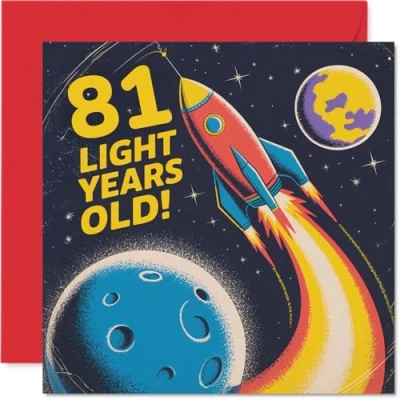 81st Birthday Cards for Women Men Light Years Old Happy Card 81 Year Woman Man Dad Uncle Auntie Grandad, 145mm Bday Greeting