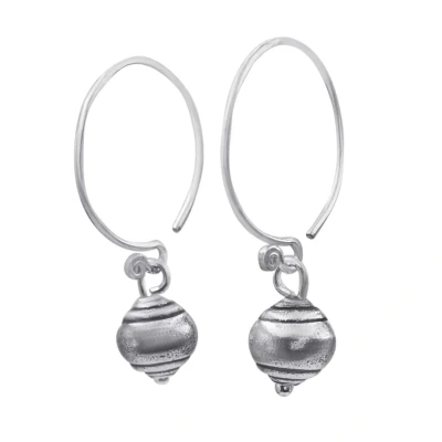 Enhance your everyday elegance with these Hill Tribe Silver Ball Charm Hoops. Add a touch of distinctive elegance to your ensemble with these minimalist yet playful boho hoop earrings.. 925 sterling silver to 999 fine silver ball charm hoop earrings.. Ear wire pull-though design.. Width 19 mm (0.7"). Length 31 mm (1.2"). Weight 2.9 grams.. These solid silver dangly earrings are made by the Karen hill tribe.. Our Karen Hill Tribe jewellery for women is all handmade with sterling silver (92.5%) or pure silver (99.9%). Thai pure silver, unlike sterling silver (92.5%) has a more matte finish and its shine is softer - it also takes longer to tarnish than sterling silver as it's mixed with a lower percentage of other base metals which speed up this process.