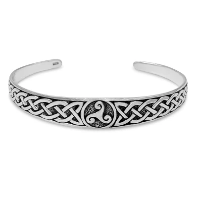 SilverlyUpgrade your wrist game with this Sterling Silver Oxidised Celtic Triskelion Knot Adjustable Bangle for Men and Women, boasting an oxidised Celtic Triskelion knot design that will add an element of ancient charm and mysticism to your look.. Chunky sterling silver adjustable bangle with a Celtic triskelion design.. Knotwork detailing.. Inner diameter 6.4 cm. Width 3.5 - 11.3 mm.. Thickness 1.4 mm. Length 15.3 cm. Weight 17.7 grams.. Add some shine to your wrist with our sterling silver bangles.. 100% genuine sterling silver containing 92.5% by weight of silver - this jewellery is both hypoallergenic and nickel free.