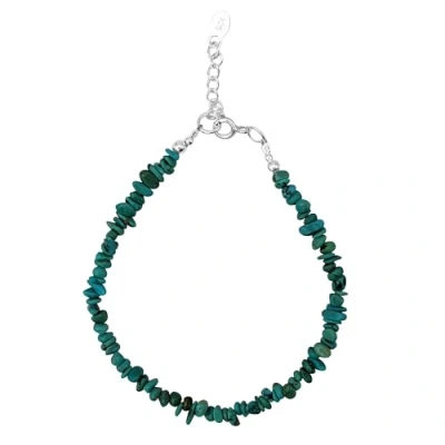 81stgeneration Women's 925 Sterling Silver Turquoise Chip Gemstone Beaded Bracelet, 7 + 1"