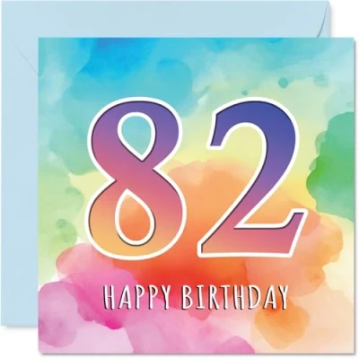 82nd Birthday Cards for Men Women Colourful Watercolour Age Happy Card 82 Year Old Man Woman Uncle Wife Auntie Grandad, 145mm Bday Greeting