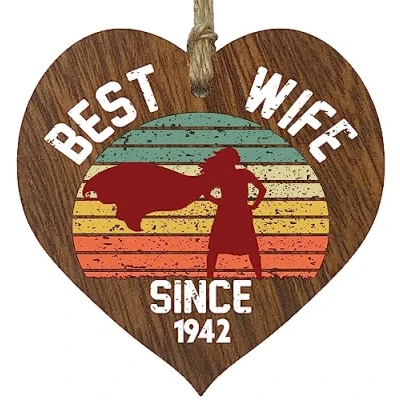 HANDMADE ANNIVERSARY GIFTS: This exceptional quality I love you gifts for wife heart shaped wedding 6th plaque shows the design: 'Best Wife Since 1942' If you are looking for the perfect I love you gift then then this hanging decoration is bound to make her smile. Soulmate gifts for her and friends cake decorations bar sign. EVERY HEART IS TRUELY UNIQUE: Unlike other brands our beautiful plaques are made from raw wood and not a laminated MDF. This means that every single heart will have it's own pattern and indentation from the grain of the wood used. Each heart is hand finished with a lacquer varnish that really accentuates the deep colour of the wood and also makes the ink of the pattern/text clearer and brighter in colour. WHAT DO YOU GET: This anniversary sign is made from the highest quality signs and plaques. Love heart gifts for wife but that can be used for any occasion from Birthdays, Valentines, Christmas and obviously for the actual anniversary date. It can be used to hang around a champagne, wine & spirits bottle. Versatile and well-made personalised gifts for men from Stuff4 Ltd. MADE AND QUALITY CHECKED IN THE UK: We manufacture all our product right her in the UK so you can be sure of a fast turnaround and a product that is expertly made - some things i still can't tell you poems. We have the perfect 2nd 3rd 4th 5th 6th 7th 8th 9th 10th 11th 12th 13th 14th 15th 16th 17th 18th 19th 20th 21st 26th 31st 36th 41st 46th 51st 56th 61st 66th 71st 76th 81st wedding anniversary gifts for husband. This beautiful heart can be used at any time to say you are the reason. EASY TO HANG: Our hanging Wooden Heart love quotes plaques comes equipped with a small jute twine, which can be then used to hang it on somewhere for decoration. The sign is convenient for you to assemble without spending your too much effort and time. Wedding decorations for house.