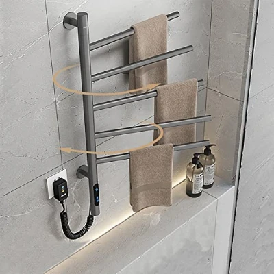 82W LCD Towel Warmer,Electric Rail with Thermostat and Timer,5 Bars 180 Rotation Electric Heated Rail,Towel Temperature Adjusted 45 70,Bathroom Dryer Electric,Gray