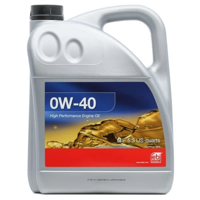 101142; Engine oil; FEBI BILSTEIN; 0W-40 5l Synthetic Oil; for BMW, VOLKSWAGEN, AUDI, MERCEDES-BENZ, TOYOTA; 83212365510, 83212365515, 83212365709, 83212365925, 83212365941, 83212365945, 83212405078, 83212405095, 83212405607, 83212405608, 83212405609, 83212405635, 83212405670, 83212405944, 83212406983, ACEAA3B3, ACEAA3B4, APISNCF, BMWLonglife01, MB2293, MB2295, SAE0W405L, VW5020050500, WSSM2C937A, 0009898301, 0009899302, 0009899402, A0009898301, A0009899302, A0009899402, A40, 5020050500