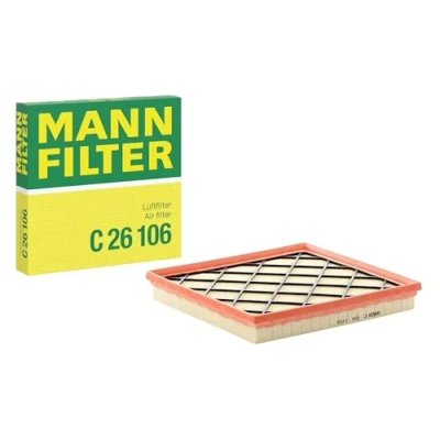 MANN-FILTER Air Filter C 26 106 / Dimensions (mm): A = 256; B = 250; H = 35 / Premium Filter in Original Equipment Quality High-quality MANN-FILTER air filters for clean air intake and optimum protection for your engine, mass air flow sensor & other sensitive components / They meet requirements of modern engine technology Highest dirt holding capacity and dirt separation efficiency, low flow resistance and high pleat stability ensure functional reliability during the entire service interval Looking to find the correct filter? Select: brand, model, vehicle type, and engine type above to see which one fits your vehicle MANN+HUMMEL complies with REACH-regulation + supports the goal of Improved health and safety through the design, manufacturing, usage, disposal and recycling of our products