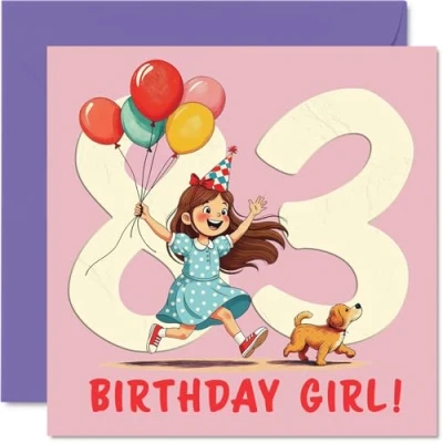 83rd Birthday Cards for Women Balloon Girl Happy Card 83 Year Old Woman Gran Grandma Wife Nan, 145mm Bday Greeting