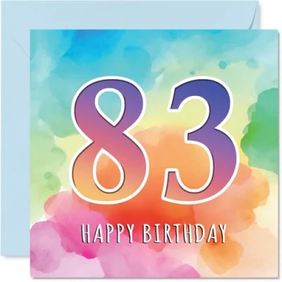 83rd Birthday Cards for Women Men Colourful Watercolour Age Happy Card 83 Year Old Woman Man Wife Husband Uncle Auntie, 145mm Bday Greeting