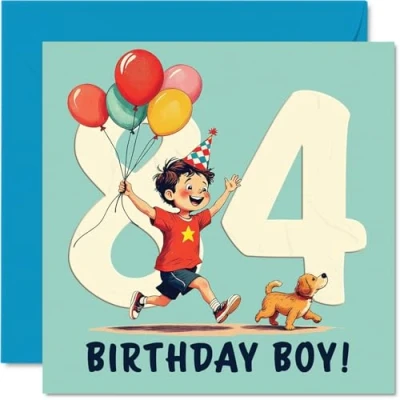 84th Birthday Cards for Men Balloon Boy Happy Card 84 Year Old Man Dad Husband Great Grandad Grandpa, 145mm Bday Greeting