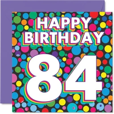 84th Birthday Cards for Men Women Funky Rainbow Dots Happy Card 84 Year Old Man Woman Grandma Wife Husband Auntie, 145mm Bday Greeting