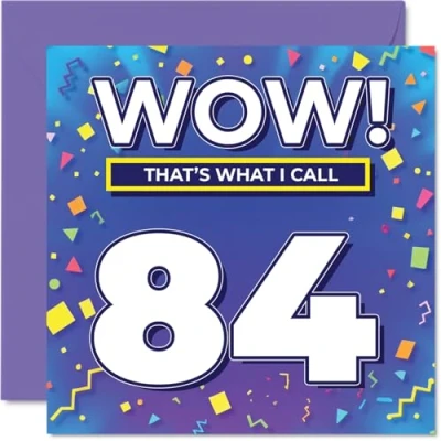 84th Birthday Cards for Men Women WOW Thats What I Call Happy Card 84 Year Old Man Woman Husband Dad Wife Uncle, 145mm Bday Greeting