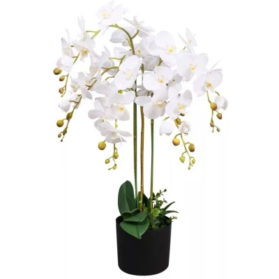 ManoManoGeneral description Our exquisite artificial bush orchid is the epitome of luxury table decoration. This magnificent flowering plant boasts large white flowers and an impressive height of 85cm and width of 70cm when arranged as depicted in our photographs. With 9 leaves and 56 flowers, the attention to detail is truly remarkable. Technical specifications Height: 85cm Width: 70cm Pot dimensions: 16cm (w) x 13cm (h) Number of leaves: 9 Number of flowers: 56 Other information This product is designed for indoor use only.