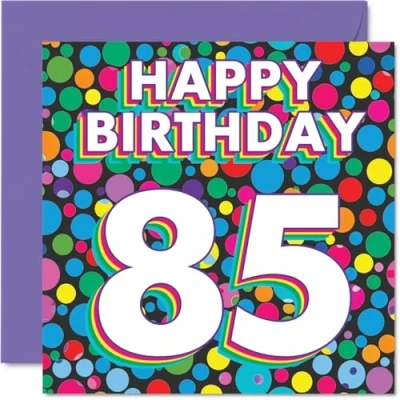 85th Birthday Cards for Women Men Funky Rainbow Dots Happy Card 85 Year Old Woman Man Wife Uncle Grandma Husband, 145mm Bday Greeting