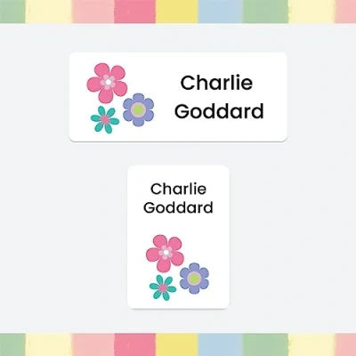 86 x Personalised Stick On Waterproof Washable Name Labels Pack of 2 Sizes for Clothes, Water Bottles, School Uniform, Equipment, Shoes, School, Nursery, Day Care Daisy (SFP)