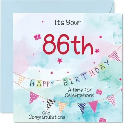 86th Birthday Cards for Men Party Bunting Happy Card 86 Year Old Man Step Dad Uncle in Law Husband Dad, 145mm Bday Greeting