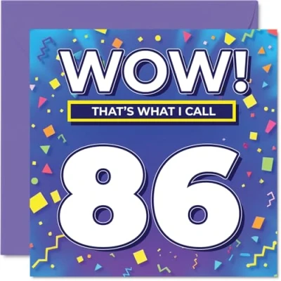 86th Birthday Cards for Men Women WOW Thats What I Call Happy Card 86 Year Old Man Woman Grandma Nan Dad Husband, 145mm Bday Greeting
