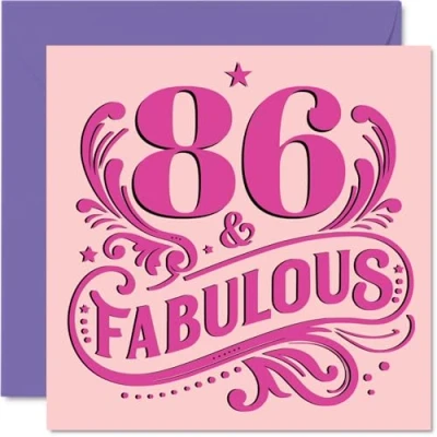 86th Birthday Cards for Women Fabulous Happy Card 86 Year Old Woman Gran Nanny Granny Auntie, 145mm Bday Greeting