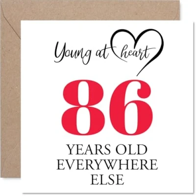 86th Birthday Cards for Women Men Young at Heart Happy Card 86 Year Old Woman Man Wife Nan Uncle Grandad, 145mm Bday Greeting