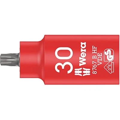 Extremely short and compact 3/8-inch bit socket for easy work even in very confined spaces Extremely short and compact VDE “ bit socket for easy work even in very confined spaces Increased safety due to 2-component isolation with yellow insulation core under red insulation outer layer Extremely short and compact VDE ⅜“ bit socket for easy work even in very confined spaces Extremely short and compact VDE ⅜“ Bit socket for easy working conne spaces Individually tested (as per IEC 60900) at 10, 000 V for safe working up to 1, 000 volts, Weight: 0.10361726314 Pounds, Manufacturer: WERA