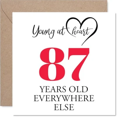 87th Birthday Cards for Men Women Young at Heart Happy Card 87 Year Old Man Woman Nan Auntie Wife Uncle, 145mm Bday Greeting