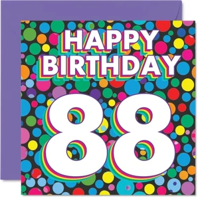 88th Birthday Cards for Men Women Funky Rainbow Dots Happy Card 88 Year Old Man Woman Dad Nanny Grandad Uncle, 145mm Bday Greeting