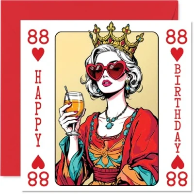 88th Birthday Cards for Women Queen Playing Card Happy 88 Year Old Woman Nan Grandma Nana Gran, 145mm Bday Greeting