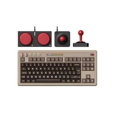8Bitdo Retro Mechanical Keyboard, Bluetooth/2.4G/USB C Hot Swappable Gaming Keyboard with 87 Keys, Dual Super Buttons and Stick for Windows Android ISO UK Layout C64 Edition