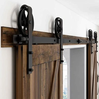 Sliding Double Door Hardware Kit 8FT/2.4M (Suitable Max door width is 2FT/60.96cm) Material: Carbon Steel, Color: Black, Warranty: 5 Years, Hardware Only Door Is Not Include Fit Door Thickness: About 3cm-5cm/ (1.18"-1.97"),Maximum Door weight Capacity: 100kg/(220lbs)for each door Advantage: ① Spring Door Stops, reduce noise and extend life ② Pre- drilled rails, steel bearings ③ New design Jnction Plate, Connect Rails smoothly Stylish design Suitable for the bedroom, study room, living room , kitchen, closet, cabinet, farmland etc., Weight: 220.462262 Pounds, Manufacturer: YBT