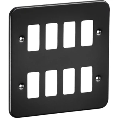 Contemporary Metalclad Design: Crafted from heavy-duty metal with a textured sand black matt finish, bringing a sleek, modern aesthetic ideal for offices, workshops, commercial spaces, and stylish loft conversions. 8-Gang Grid Faceplate: Designed to house up to eight grid modules, providing extensive flexibility for creating complex custom switching and control arrangements. Compatible with Grid Components: Intended for use with 2 × GDF002F modules (sold separately), enabling versatile and tailored configurations within the Metalclad Grid System. For Metalclad Grid Systems Only: Ensures a secure and professional finish when used exclusively with the Metalclad Grid System., Manufacturer: Knightsbridge