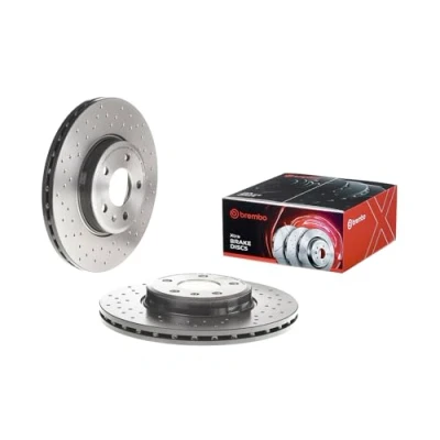 Warning! The box contains only one disc. The discs must always be replaced by axis (in pairs), so two boxes must be purchased. Drilled brake disc: better wet performance, greater heat dissipation and pad cleaning Maximum performance together with Brembo Xtra Pads. With UV coating; With fixing screw Diameter: 314 mm; Thickness: 25 mm; Thickness minimum: 23.5 mm OE equivalent; ECE R-90 approved