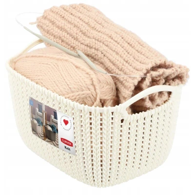 8L Curver Knit rectangular basket, cream