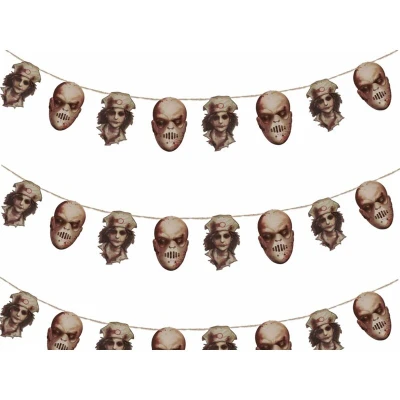General description This Halloween decoration features a garland made up of 8 pieces of scary, chopped bloody faces cut-outs, perfect for creating a horror-themed atmosphere.