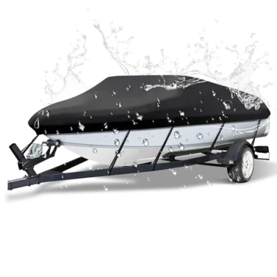 Universal Boat Cover - NEVERLAND Boat cover fits V shape, V-Hull, Tri-hull, Runabouts, Pro-Style bass boat and so on. This trailerable boat cover suitable for boat up to 17ft-19ft long and beam width up to 102 inch Waterproof Design - Boat cover made of durable 'RIPSTOP' marine grade oxford fabric with water resistant PVC coating and anti-UV finish. Bass boat cover will protect your boat perfectly from the sun, wind, dust and bad weather, keep your boat always in a good condition All-round protection - Bass tracker boat cover equipped with 13 adjustable straps and quick-release windproof buckles, elastic cords around the bottom edge ensure a tight fit, which allow you to conveniently lock the cover with your boat and prevent it from being blown away, perfect for both trailering and outdoor storage Reliable Performance - The boat cover is dyed using a unique dyeing process and high grade dyes to ensure high colorfastness, so the cover will not release dye and stain your boat, keep the hull clean and dry Additional Boat Accessories - Package includes 1 x Boat cover, 1 x Storage bag and 13 x Adjustable quick-release straps. The boat covers 17-19 ft provide protection against rain, UV rays, dust, and other weather-related damage