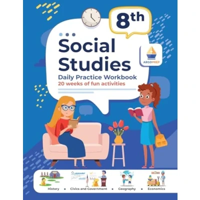 8th Grade Social Studies: Daily Practice Workbook 20 Weeks of Fun Activities History Civic and Government Geography Economics + Video Explanations for Each Question