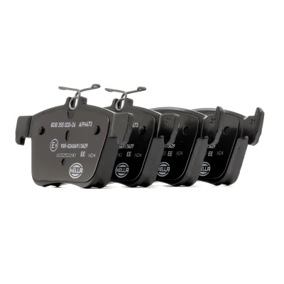 8DB 355 020-261; Brake pad set; HELLA; not prepared for wear warning indicator; for VOLKSWAGEN, AUDI, SEAT, SKODA, CUPRA; 8996D1761, 9493D2255, 3Q0698451, 3Q0698451B, 3Q0698451C, 3Q0698451D, 3Q0698451E, 3Q0698451F, 3Q0698451J, 3QF698451, 5G0698451, 5Q0698451, 5Q0698451AG, 5Q0698451P, 5Q0698451S, 8V0698451A, 8V0698451D, 8V0698451H, L5QD698451A, L3TD698451, L8V0698451, 3Q0698451P, 3Q0698451M, 3TD698451, 3Q0698451G, 3Q0698451H, 3Q0698451L, 3Q0698451S, 5G0698451A, 5Q0698451AC, 5Q0698451AH, 5Q0698451T, JZW698601BB, 5QD698451A, 3QD698451