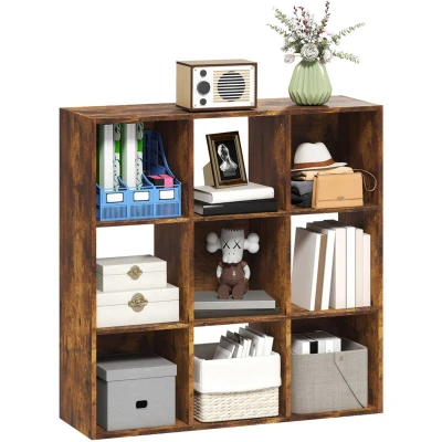 9 Cube Storage Cupboard Bookcase Bookshelf Home Office, Rustic Brown Homcom