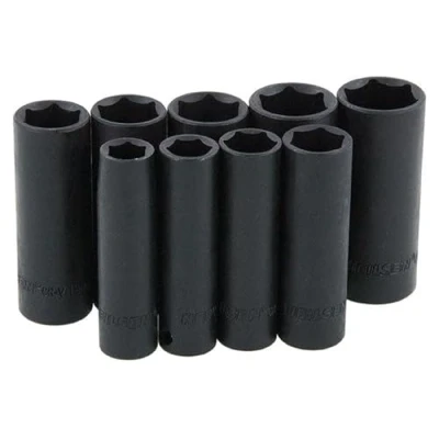 AmazonSet Contents: 9pc deep impact socket set with socket rail Drive Size: 3/8in drive Drive Type: Wall drive sockets Material: Chrome vanadium construction Application Type: Suitable for hex fasteners, Manufacturer: NEILSEN TOOLS
