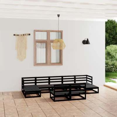 General description This 9 Piece Garden Lounge Set is an excellent choice for relaxing outdoors, whether you're taking a nap or enjoying conversations with family and friends. Made from solid pinewood, this set is sturdy and stable, and can be combined with other modular segments to create your own personalized configurations. Technical specifications Colour: Black Material: Solid pinewood Middle/Corner sofa dimensions: 70 x 70 x 67 cm (W x D x H) Table/Footrest dimensions: 70 x 70 x 30 cm (W x D x H) Maximum load capacity (per seat): 110 kg Assembly required: Yes Delivery contains: 5 x Middle sofa, 2 x Corner sofa, 2 x Table/Footrest SKU: 3076088 Usage To extend the life of your outdoor furniture, it is recommended to: Clean regularly using a mild soap solution. Store in a cool, dry place indoors if possible. If stored outdoors, protect with a waterproof cover. Wipe and dry excess water or snow from flat surfaces after rain or snowfall. Ensure sufficient air circulation to avoid