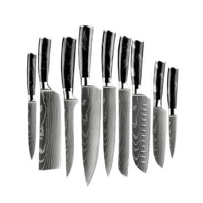 9 piece Knife Set Japanese Knives Damascus Print Onyx Epoxy In luxury gift box Shinrai
