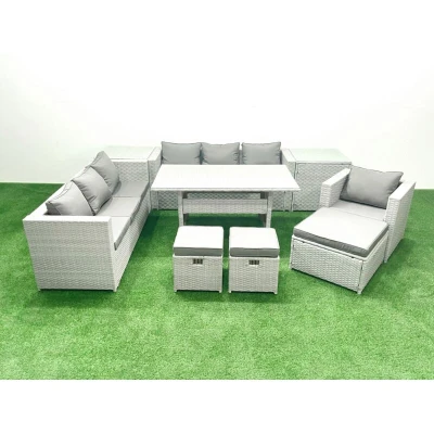 9 Pieces Outdoor Rattan Sofa Set with Cushions Patio Garden Furniture Sets Armchair Dining Table 2 Side Tables 3 Footstools Fimous