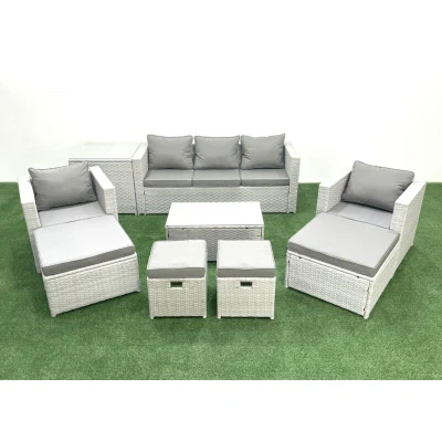 9 Pieces Rattan Garden Furniture Set Outdoor Sofa Chair Coffee Table with Side 4 Footstools Light Grey Mixed Fimous