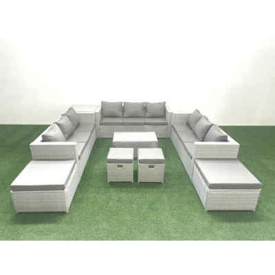 9 Pieces Rattan Garden Furniture Set Outdoor Sofa Coffee Table with Side 4 Footstools Light Grey Mixed Fimous