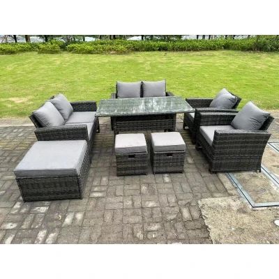 9 Seater Dark Grey Mixed High Back Rattan Sofa Set Dining Table Garden Furniture Outdoor With Arm Chair Love Seat Fimous