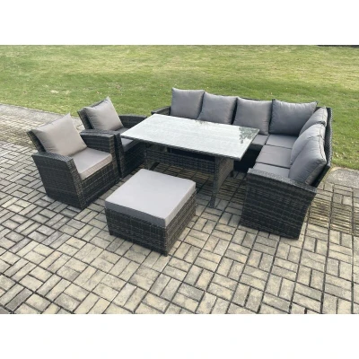 9 Seater Garden Rattan Furniture Corner Sofa Dining Table Chairs Set with Big Footstool 2 Armchairs Indoor Outdoor Lounge Fimous
