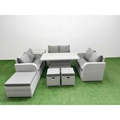9 Seater pe Wicker Rattan Furniture Sofa Sets with Adjustable Lifting Dining or Coffee Table 2 Love 3 Stool Side Light Grey Fimous