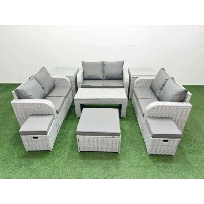 9 Seater pe Wicker Rattan Furniture Sofa Sets with Oblong Coffee Table 2 Love 3 Stool Side Light Grey Fimous