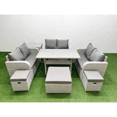 9 Seater pe Wicker Rattan Furniture Sofa Sets with Rectangular Dining Table 2 Love 3 Stool Side Light Grey Fimous